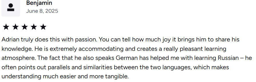 I’ve helped over 60 students improve their pronunciation and confidence in Spanish, Russian, German, and Chinese